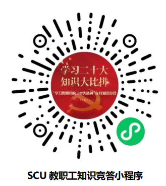 为进一步激发全校教职工认真领悟会议精神的学习热情,营造“以赛促学、以学促思、以学促行”的良好氛围,党委教师工作部于2022年11月3日至11月10日组织开展线上“学习二十大 知识大比拼——‘学习贯彻党的二十大精神’知识竞答”活动,校内教职工可通过“川大人事人才”公众号链接进入答题,或扫描小程序二维码参加活动。