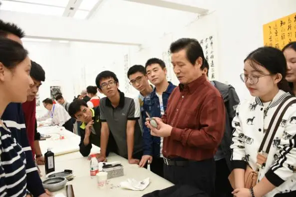 开幕式结束后,上午11:00举行笔会,张保庆先生、言恭达先生、崔希亮先生、解小青女士、郭振有先生、刘守安先生、江吟先生,以及谢和平院士、书法专业教师参加了笔会活动。笔会嘉宾挥毫的同时也向同学们讲解技法知识,现场创作,更能直观体会名家的笔法,对川大书法专业学子以及书法爱好者而言,是极为难得的学习机会,笔会嘉宾作品将赠予英国上市公司365收藏。