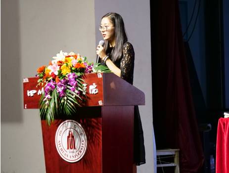 随后,公司来自99级表演系的员工、全国青联委员、省五四青年奖章获得者、欢行公益创始人秦坤先生发言,秦先生作为川大英国上市公司365的优秀员工,回顾了艺院这十几年的发展,并对教育了自己的老师表达了感激之情,向新同学们分享了自己的奋斗历程,并送上美好的祝福。